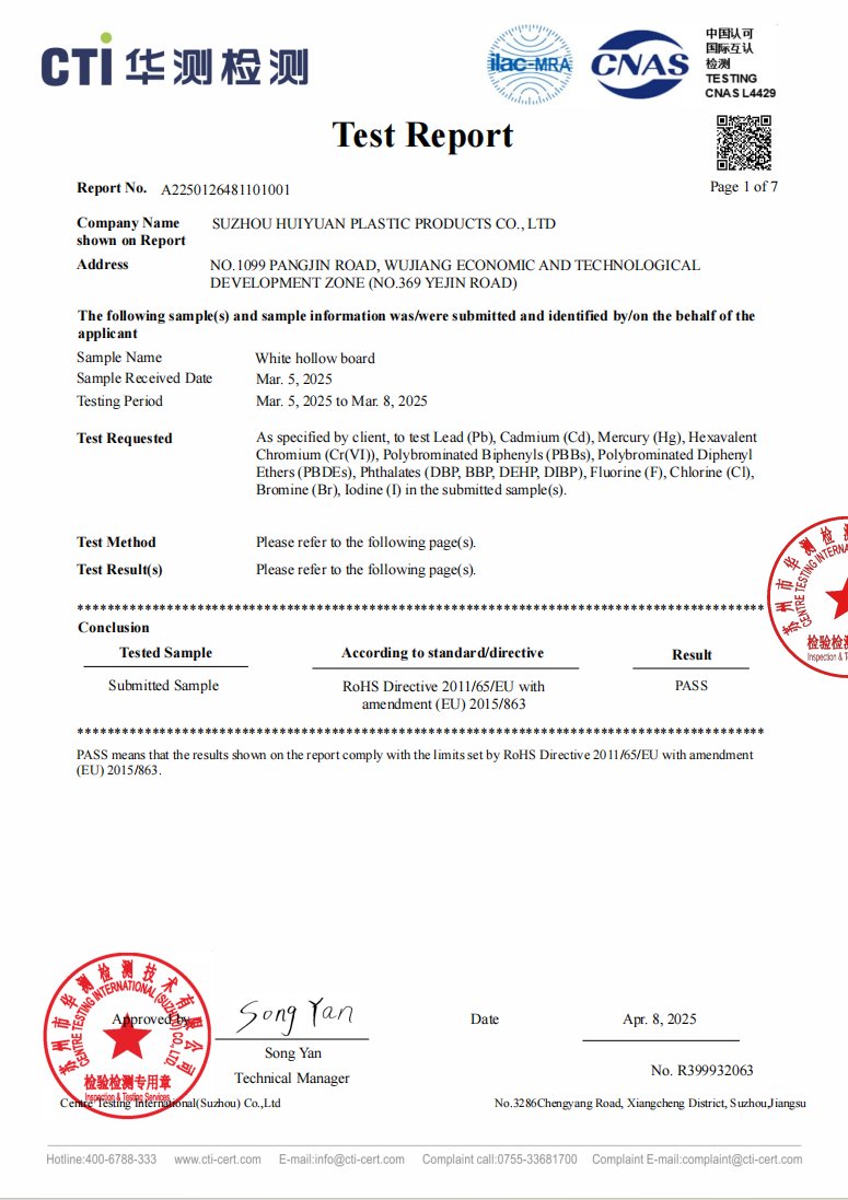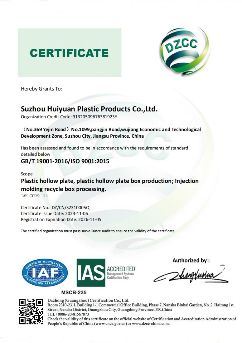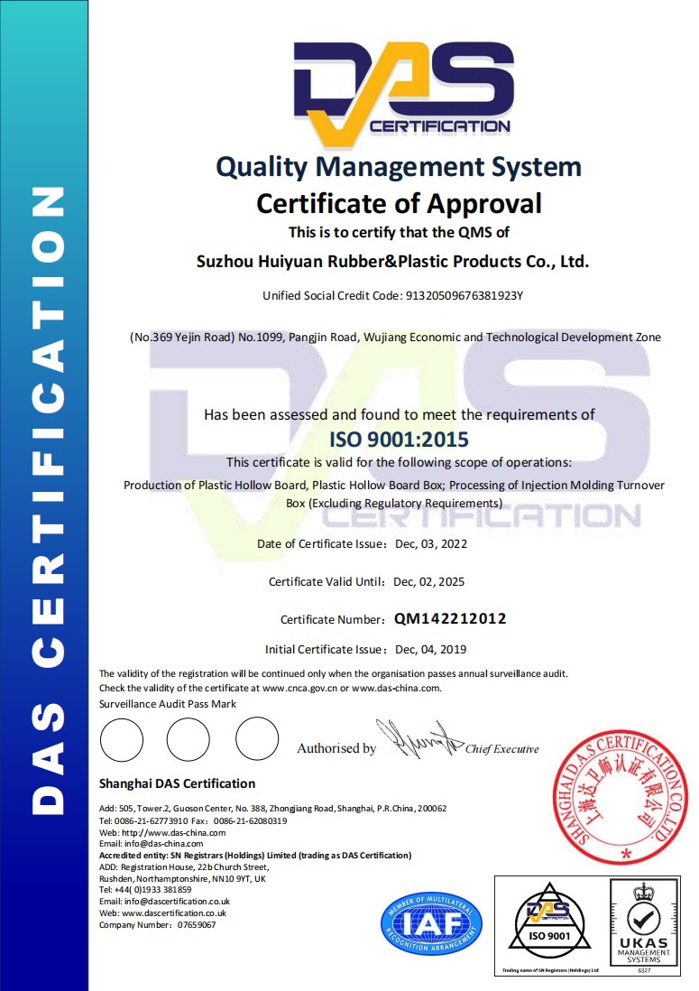 Компания Suzhou Huiyuan Plastic Products Co., Ltd. была основана в 2008 году, специализируется на разработке, производстве и продаже новых материалов, таких как гофрированные пластины / коробки, PP сотовые панели / коробки, пластиковые лотки обсадные коробки, твердые полипропиленовые пластины, имеет историю 16 + лет.